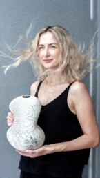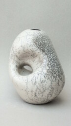 Creating the “PEBBLES” series, I drew inspiration from the shape and texture of smooth seaside stones I found on the beach. The piece was glazed and fired in a raku kiln, where the fire and smoke created unique patterns on its surface.